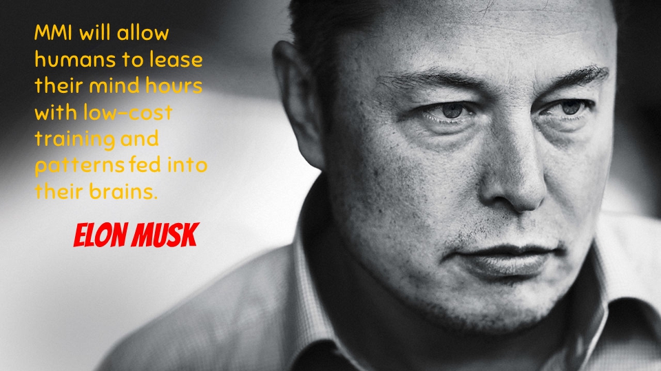 Tesla founder, Elon Musk, predicts that MMI will allow humans to lease their mind hours with low-cost training and patterns fed into the human brains.