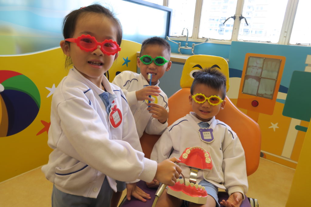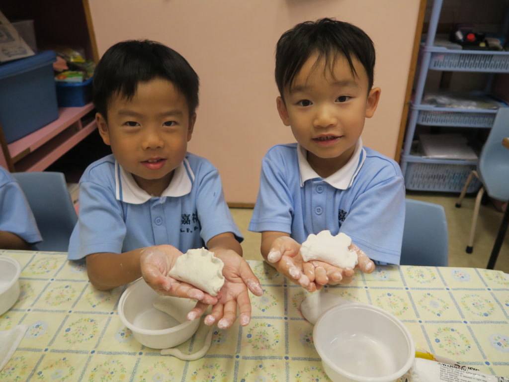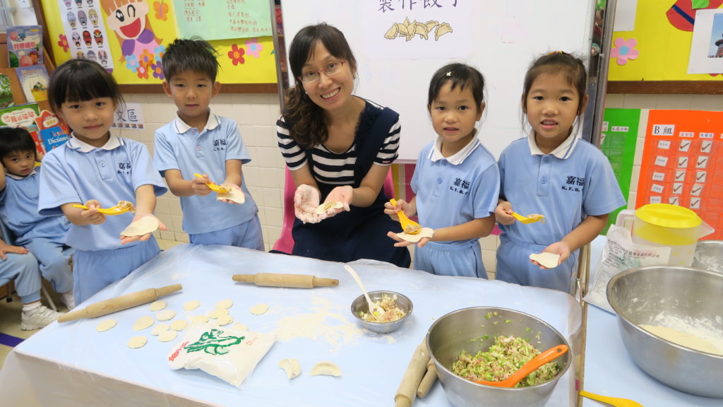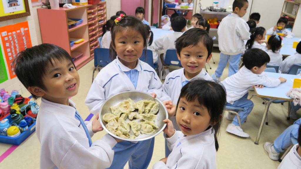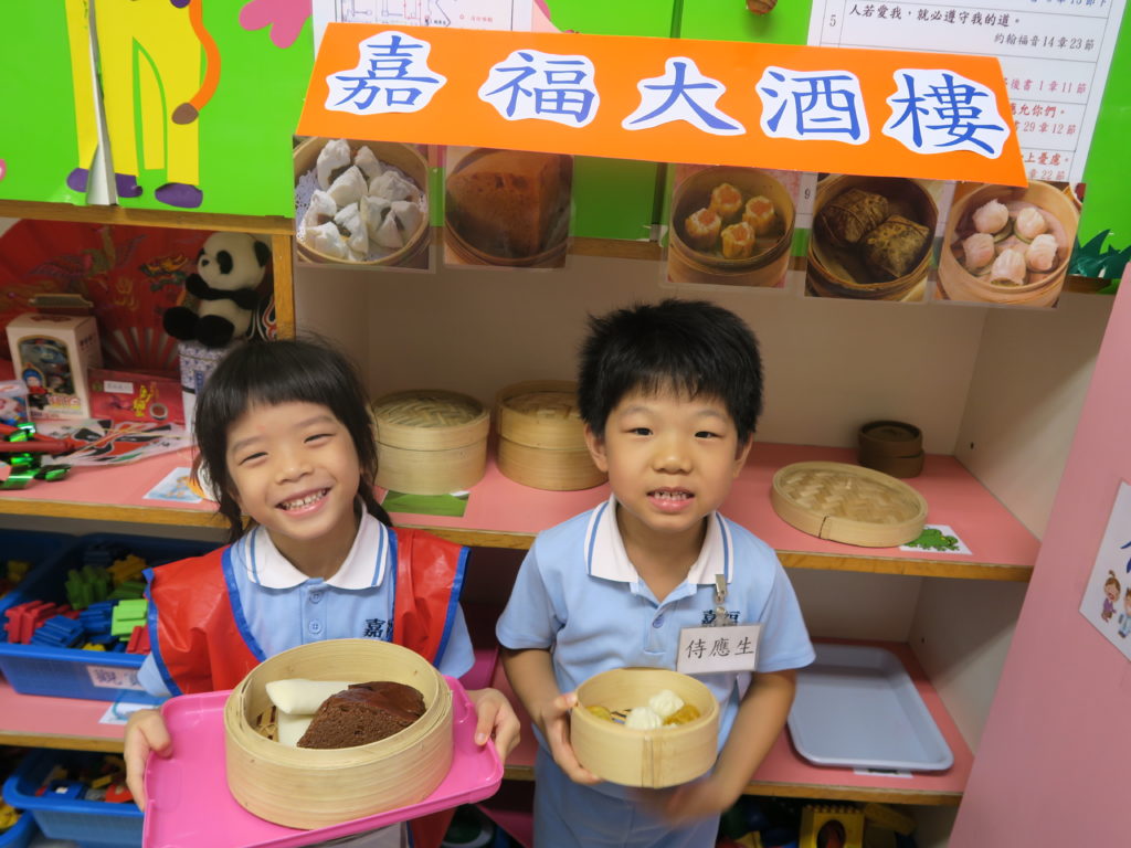 Our school emphasizes on nurturing the child’s interest in learning and spirit of exploration in their acquisition of knowledge. Based on the child’s interest, ability and life experience, we use the Design Activity Program (Project Approach) to create an explorative environment in encouraging the child in self-study. For example, in the activity shown below, children learn about dumplings by making them and tasting different types of dumplings. In the arts activity, we ask children to make a dumpling model by clay. We decorate the classroom as Ka Fuk Restaurant and have the children role-play as restaurant workers selling dumplings. The goal is that children would gain knowledge in the process of exploration, thus encouraging them to take initiative in their learning.