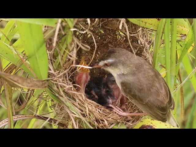 Avian Parenting: Wild Bird Provides Grasshopper Meal for Nest Chicks