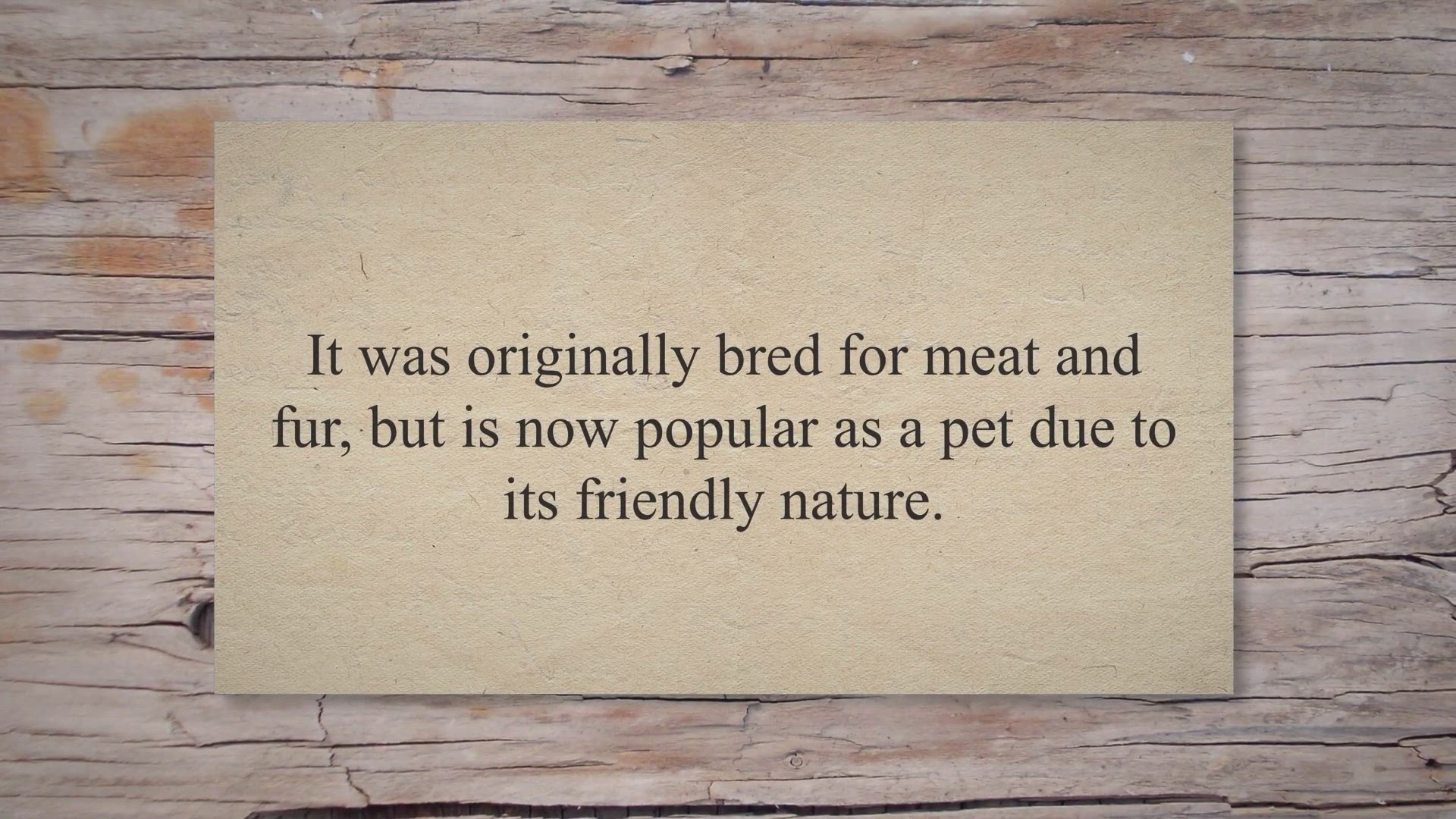 It was initially because of rabbit meat farming, but they are now bred for their temperament and behavior.