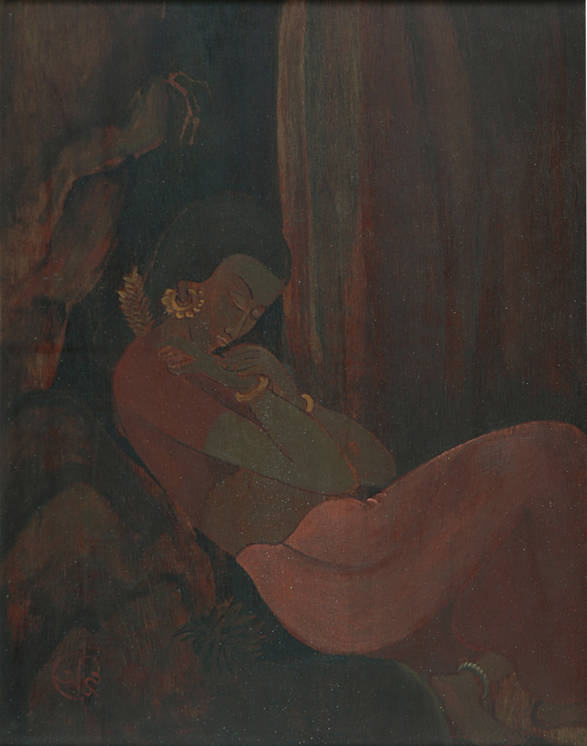 Born in the Tagore household at Jorasanko in Calcutta, Asit Kumar Haldar was initiated him into art by a traditional patua, Jhareshwar Chakravarty. Training under Abanindranath Tagore at the Government School of Art, Calcutta, Haldar learned clay modelling from traditional artists Jadunath Pal and Bakkeshwar Pal, and sculpture from Leonard Jennings. Experimenting with different styles before evolving his own, Haldar painted several memorable series History of India, Life of the Buddha and Rubaiyat of Omar Khayyam. Linking metaphors and allegories, he raised illustrative art in India to a level never before achieved for its languid beauty. Haldar’s washes stood out for an attenuated delicacy and unusually large sizes. One of the several artists to copy the Ajanta cave paintings under Lady C. J. Herringham, Haldar also worked on copying the Jogimara and Bagh cave paintings. While teaching at Santiniketan in 1911-23, he was the first principal of Kala Bhavana in Santiniketan, and later, principal of the College of Arts and Crafts, Lucknow. In 1934, Haldar was elected a fellow of the Royal Society of Arts, London, and conferred the title Rai Sahib by the colonial British government.