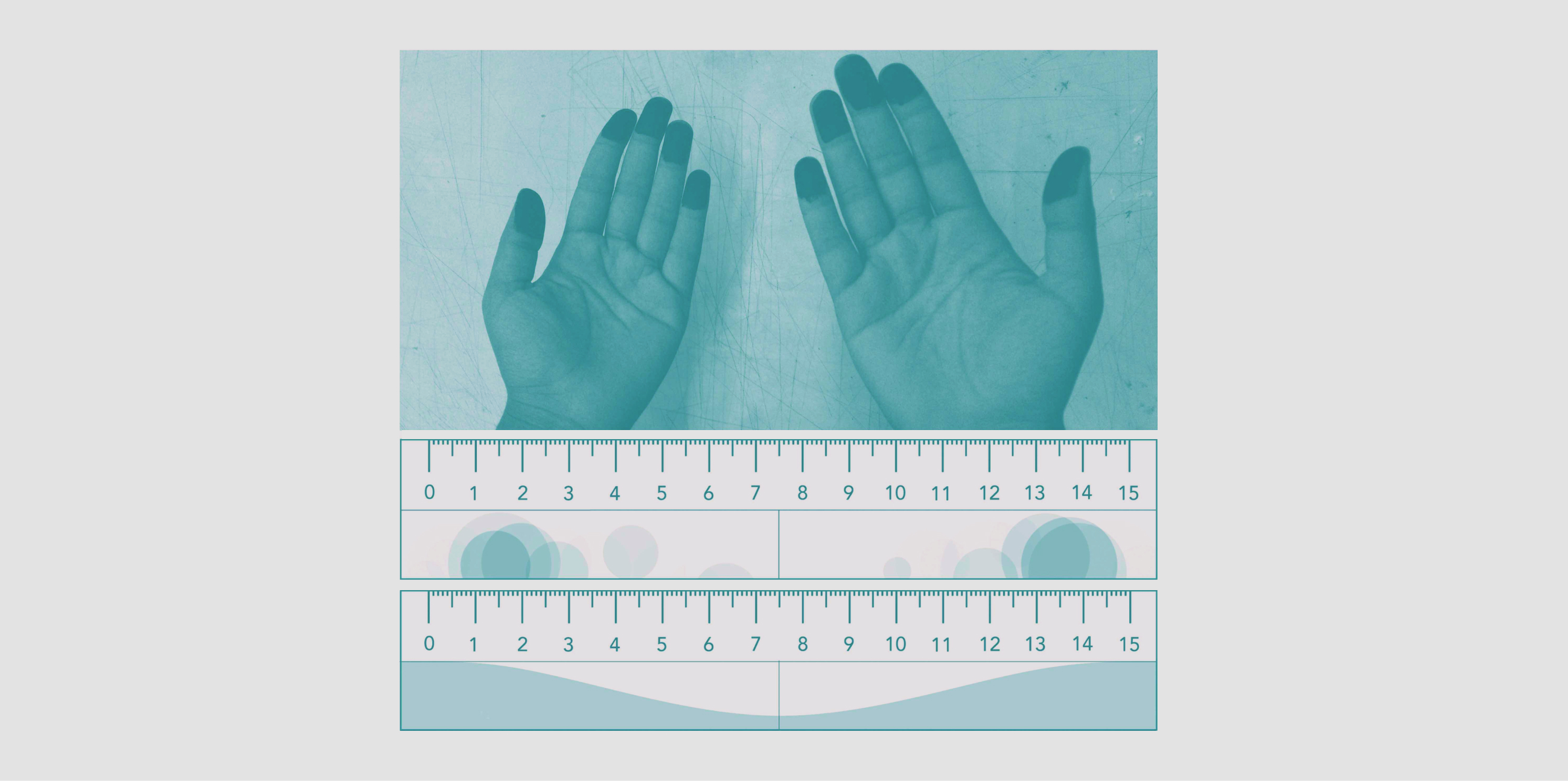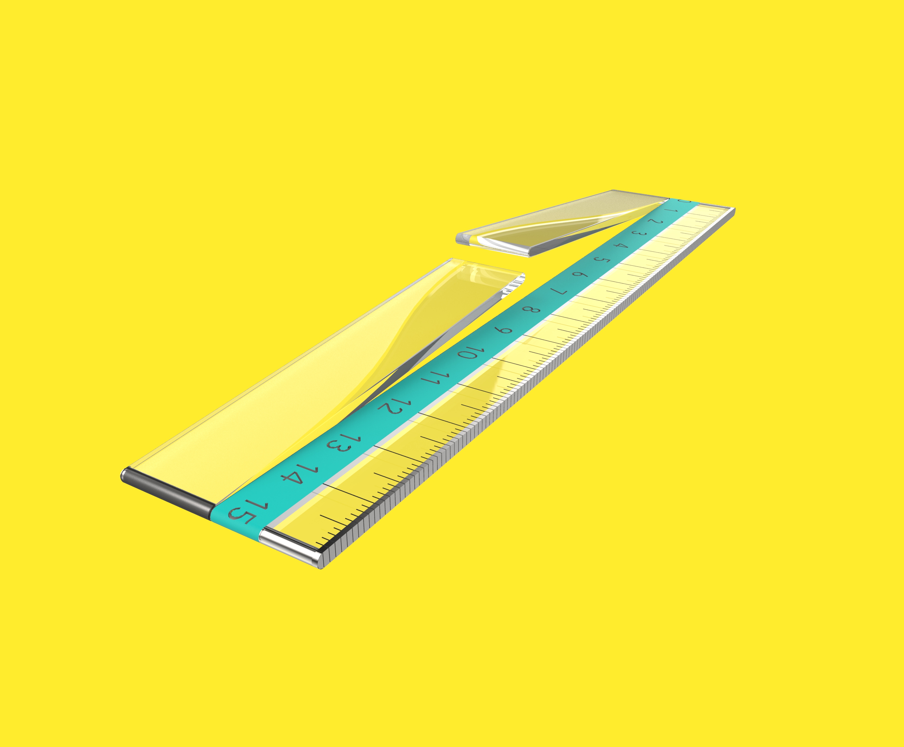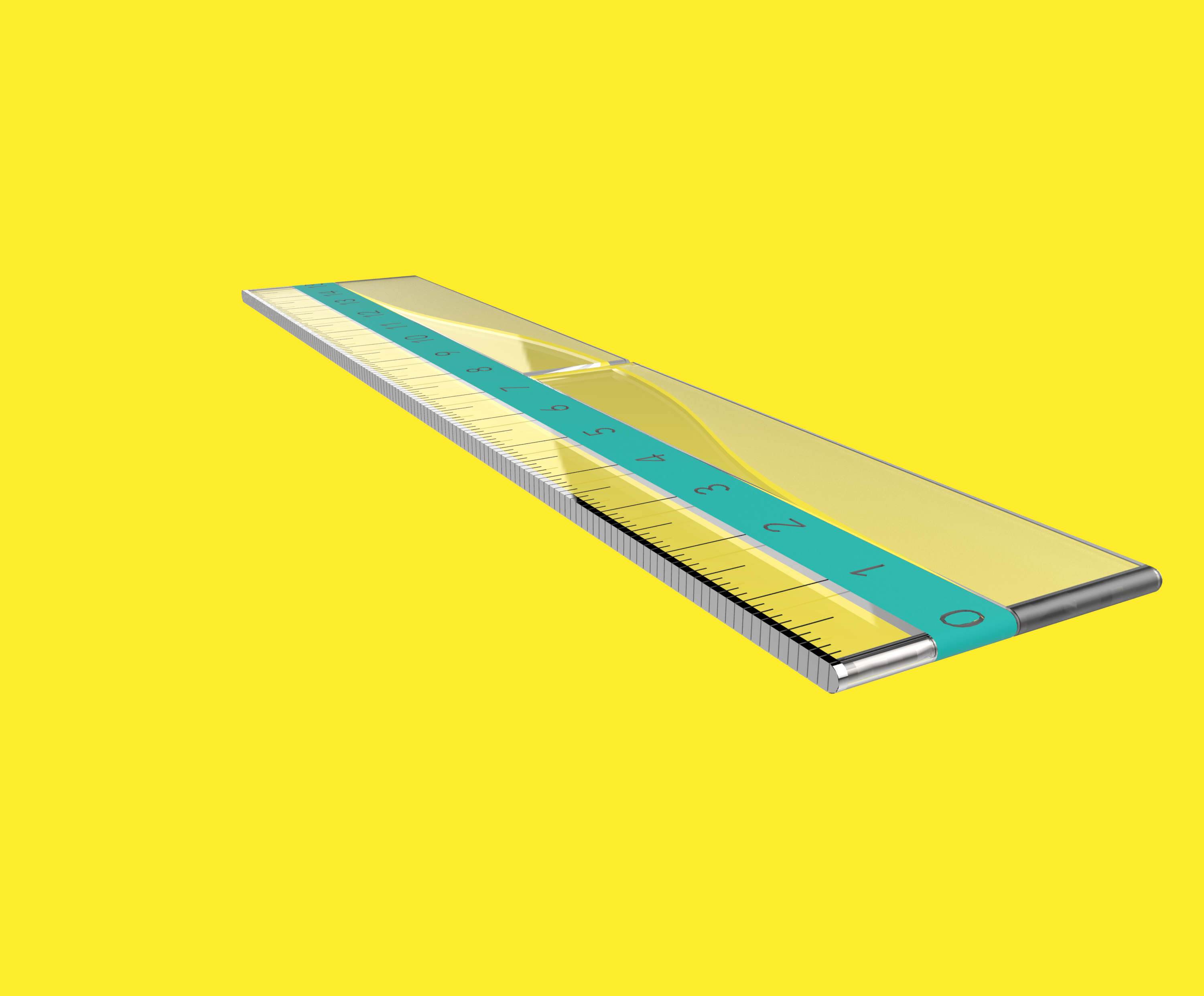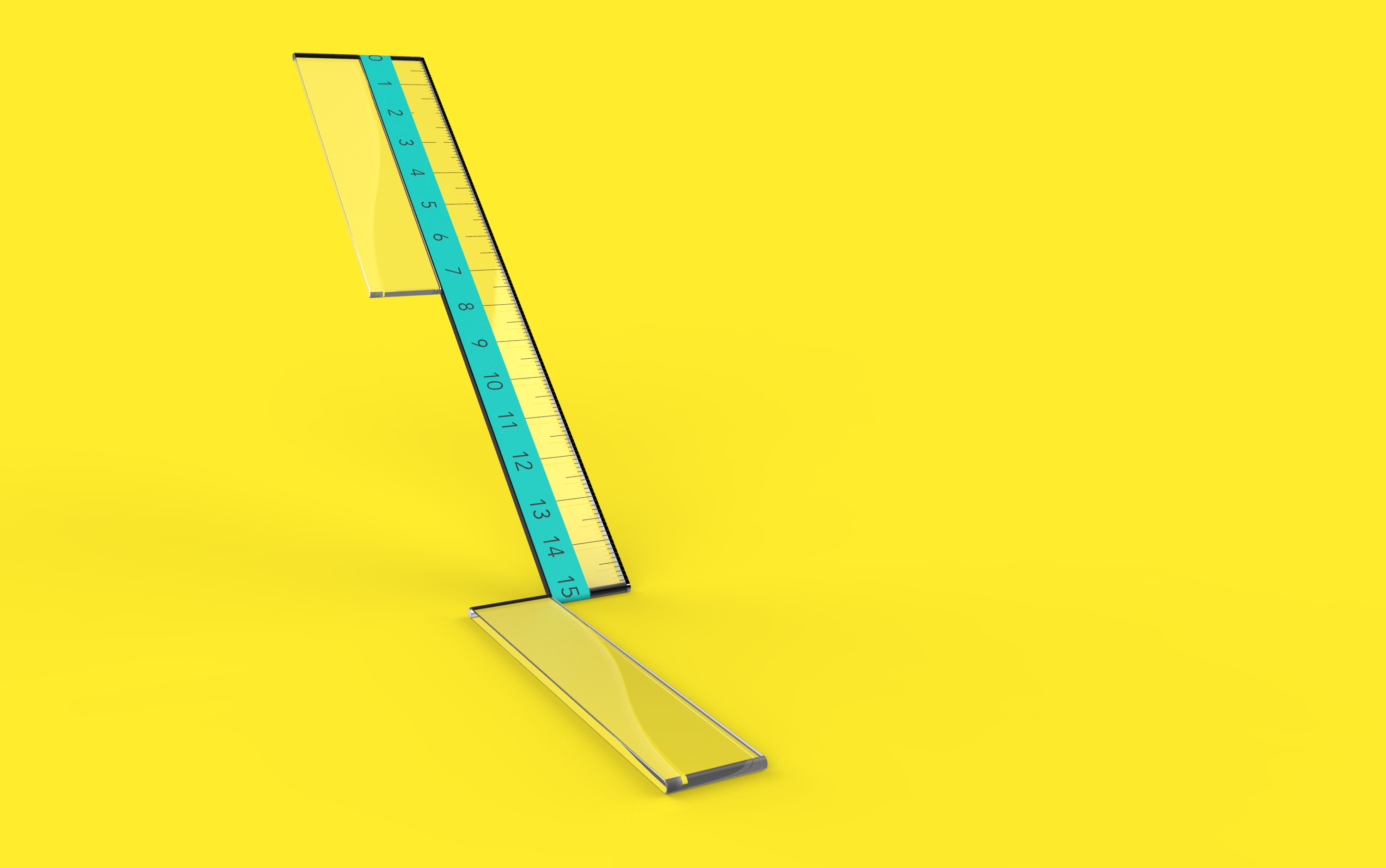 Flip is constructed by attaching two rotating arms to a linear scale. The rivets on the two sides allow the arms to swivel. When you reach the end of a measurement, the flipping arms enable you to effortlessly hold and rotate the scale. With its continuous markings on both front and back, you can flip this repeatedly in a straight line while measuring and adding as you progress.
