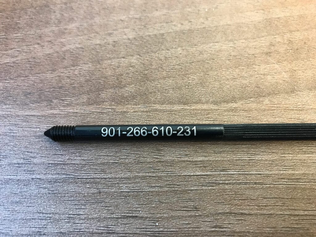 The process by which the laser beam removes material, creating a durable and permanent mark (with or without contrast) that is <0.010” deep. This method is commonly used for applications sensitive to wear inducing elements like physical abrasion, temperature, pressure, weathering, etc.