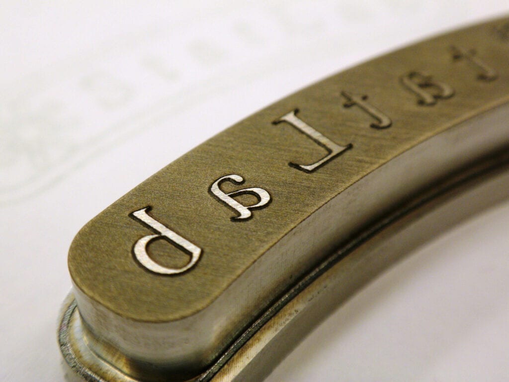 The process by which the laser beam removes even more material, creating an extremely durable and time tested mark. This method is frequently used for engraving steel molds and graphite electrodes along with many other applications. Typical depths exceed 0.010” while maximum depth engraving done with our lasers usually does not exceed 0.030”. Certain materials have easier penetrability so please consult our laser specialists if your project requires engraving to be deeper than 0.030”.