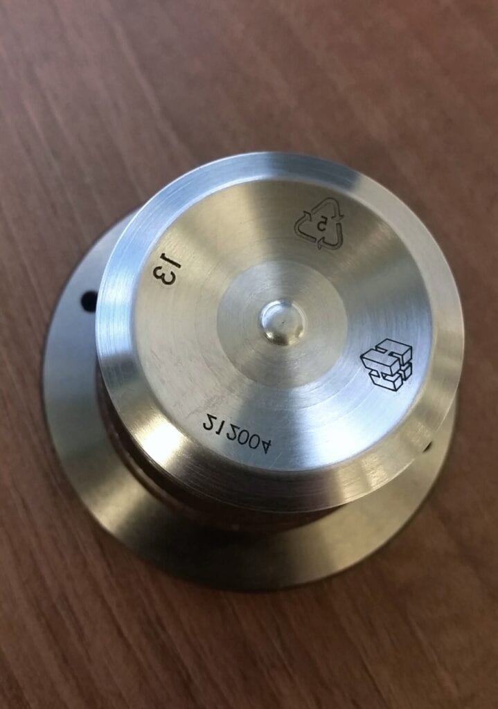The process by which the laser beam heats the surface of a metal, creating a change in color (usually flush with the surface/minimal to no depth). On most metals, a dark, ink-like contrast is achieved using this method. Annealing on thin metals has the potential to warp or distort the material due to excessive heat buildup. Consult our laser specialists for a marking method best suited for thinner metals.