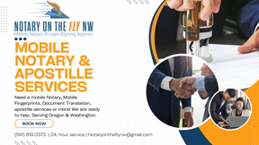 Notary on the Fly NW & Apostille Services understands the importance of convenience in the legal process. Our Mobile Notary services bring the notary to your doorstep, ensuring that your documents are not just legally binding but also convenient to finalize.