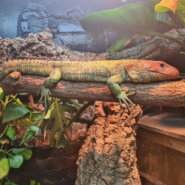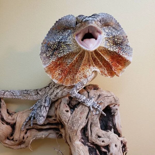 This colorful reptile is not a crocodile but a lizard. It gets its name from its powerful tail, which is scaly like that of a crocodile. The Chinese crocodile lizard’s defining feature is its vibrant skin. It has a gray-brown body with a yellow-tan underside and red or orange scales running along its sides. Males are usually larger and more colorful, with the colors growing more vivid during breeding season.