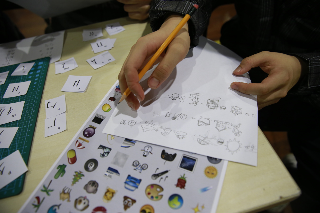 After the lecture, the tutor will lead the visitors through a group of interactive creations, playing a ‘word game’ in the artistic use of fonts and texts. Various forms of content creation are performed through the combination of the comprehensive materials we have prepared and the cards printed with emoji and Chinese characters.