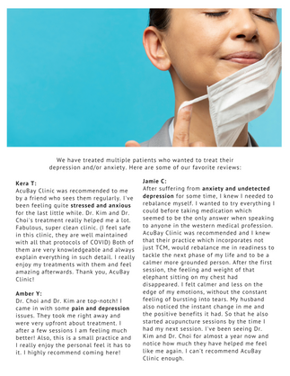 We have treated multiple patients who wanted to treat their depression and/or anxiety. Here are some of our favorite reviews:
