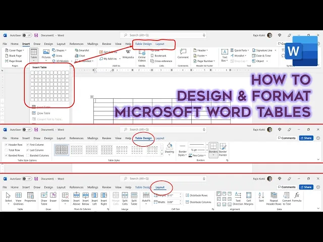 How To Design and Format Tables in Microsoft Word Tutorial - Lesson 9
