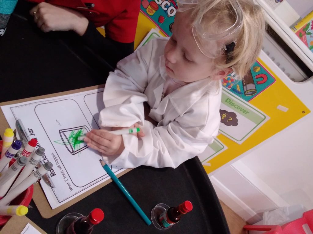 The intention of the activity was for the children to make predictions, and to discuss what they thought may happen first before carrying out the experiment. The children followed the instructions and used some fantastic vocabulary when sequencing the experiment.