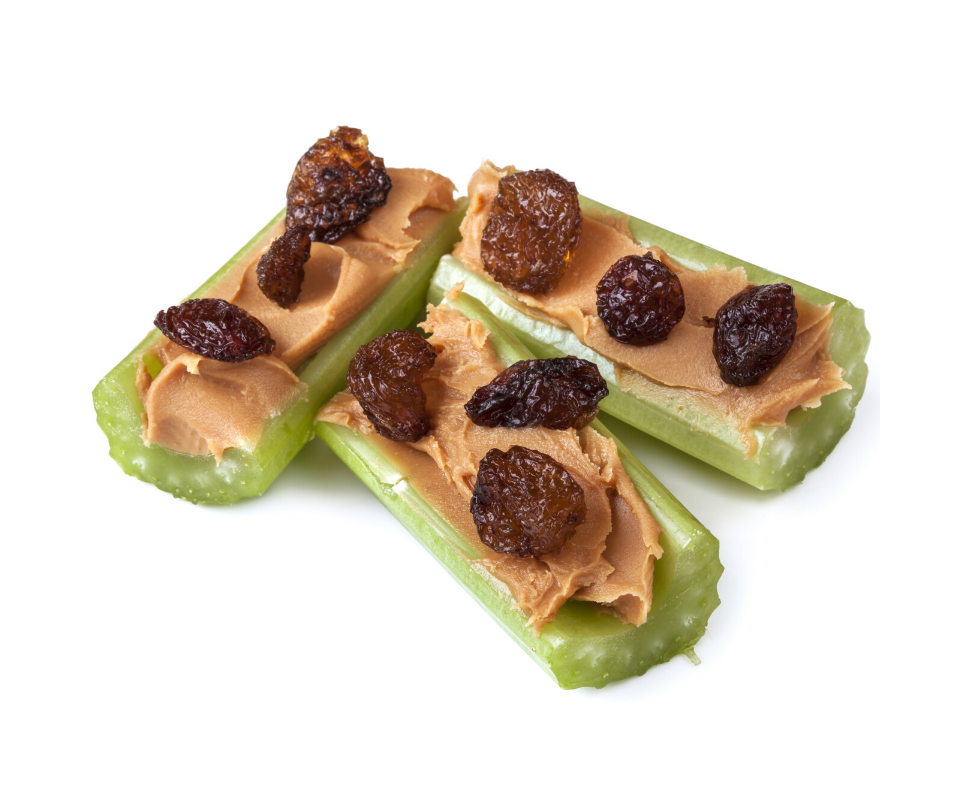 - Make ants on a log: Fill celery with peanut butter and arrange raisins on top.