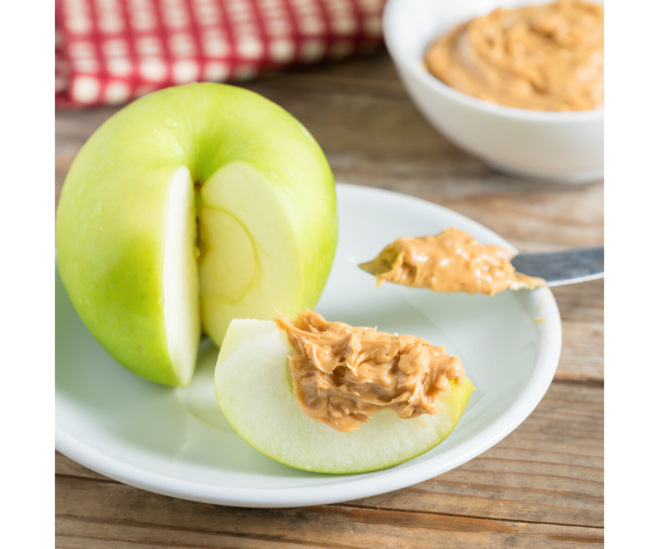 - Spread peanut butter on apple and banana slices.