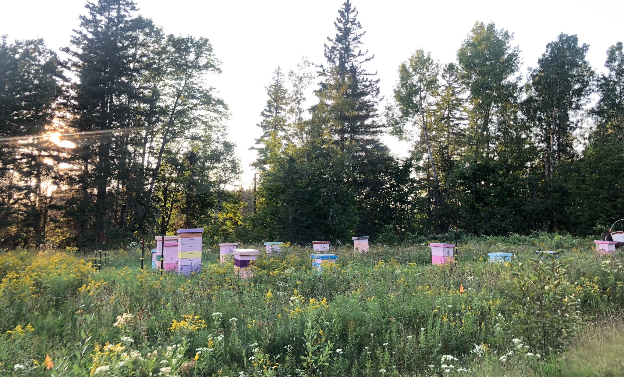 The most important and valuable act a beekeeper can do for their bees is to find them a place where they can thrive. A bee hive is the bees home, and as beekeepers, we choose where they will be living. At Lost Meadows we take this decision very seriously. All of our meadows are carefully chosen to be in a location that not only has an abundance of forage for them, but forage that is mostly free from Big Ag chemicals. These chemicals are one of the number one impurity's that show up in honey testings. All of these factors are part of the reason why we have chosen to focus our ever growing business to the north.