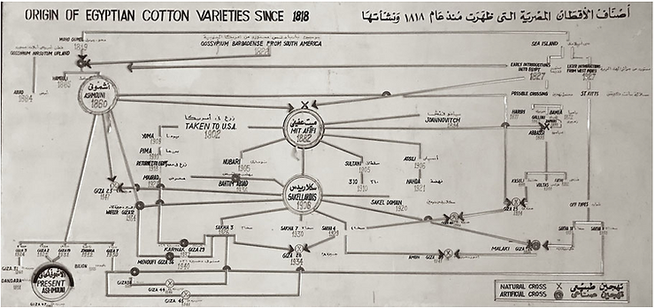 The origin of Egyptian Giza Cotton varieties goes back to 1819, when a French textile engineer by the name of Louis Alexis Jumel tried to persuade Muhammad Ali Pasha that the cultivation of an Ethiopian Cotton variety, discovered at Cairo in the private garden of a Turkish officer called Maho Bey, could revolutionize the whole agricultural output of the country. In 1817, Monsieur Jumel was employed in Egypt by the Pasha as director of a projected spinning and weaving mills. In the course of his visit to the garden, he gleaned all the information Maho Bey possessed on the subject, and procured some seeds of this Cotton. And after having made his estimations he presented to the Pasha a project for increasing his revenues, for which he asked 20.000 dollars. The Pasha consented asking less brilliant but more solid results. So the engineer, associating him-self with a local merchant, took a small lot of ground at the village of Matareya, near the Obelisk of Heliopolis, and commenced a small plantation. The produce in 1820 was three bales, which were shipped to Italy (Trieste); the advices were highly satisfactory to convince the Pasha enough to give him the direction of the large scale Cotton plantations. The year 1822 produced about 1.500 tons of this new Cotton, the staple of which was markedly fine, but more unequal and less clean than that of the ensuing years. Rude presses were constructed for packing the Cotton at the villages; but as the machinery was defective, some of the Alexandrian merchants brought hydraulic presses, with which they caused the bales to be pressed again. The Cotton eventually came to be known as Jumel (or Mahò) and it soon found voracious markets in Europe, especially in England where only the Lancashire mills with the latest machinery could handle the fineness of its quality.
