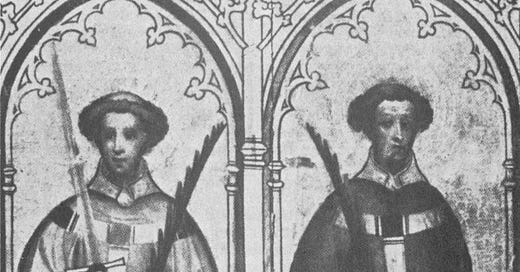 15thC painting of the two Hewalds at the Church of Saint Kunibert (Cologne)1