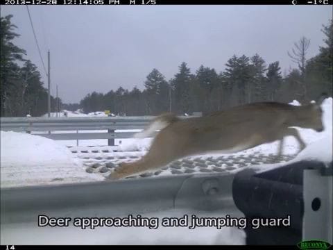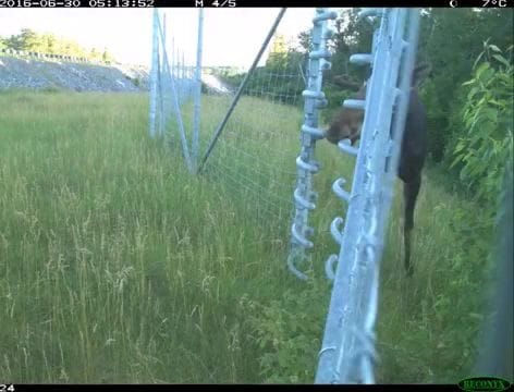 Fence end treatments are important so wildlife do not move around the ends and onto the highway or along the fence Right-of-Way becoming trapped on the wrong side of the fence. Rock boulder fields is one technique that is used to deter animals from moving around the fence end. Rock fields or Rip Rap tied into steep highway slopes are also effective, sometimes for some species and not others. This video shows this for moose and deer below.