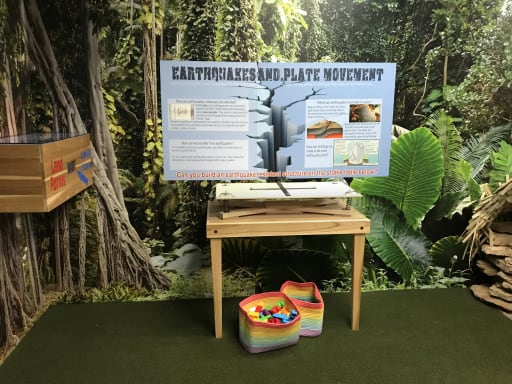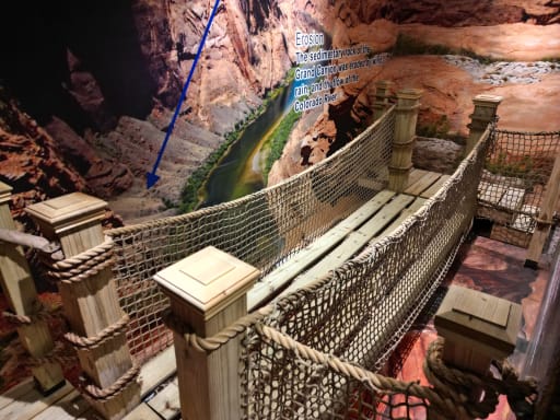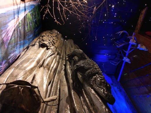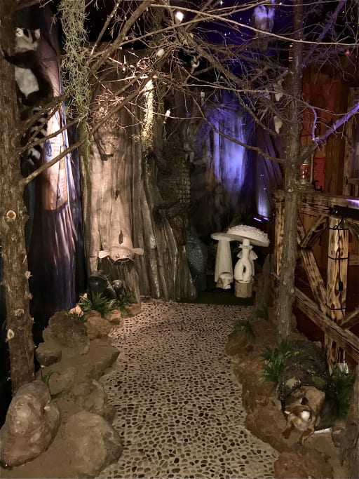 Colorful environments are visually engaging and include a rope bridge over a canyon, animatronics, augmented reality alligator and tornado, and a fisherman’s cabin located in a swamp.