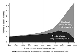 While the lives of the rich in rich countries have got better in the same period, they haven’t improved as much as those of the poor. As Stephen Pinker puts it, “the most precious resources of all—time, freedom, and worthy experiences—are rising across the board,” which is something to be cheerful about.