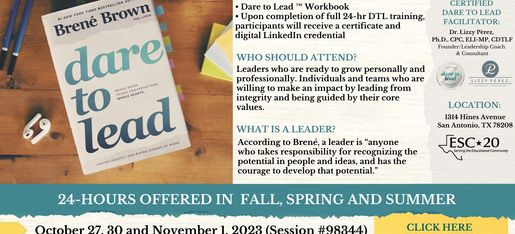 Next Dare to Lead™ open to the public @ESC-20 in San Antonio, TX is February 7, 13, & 14 2025 with