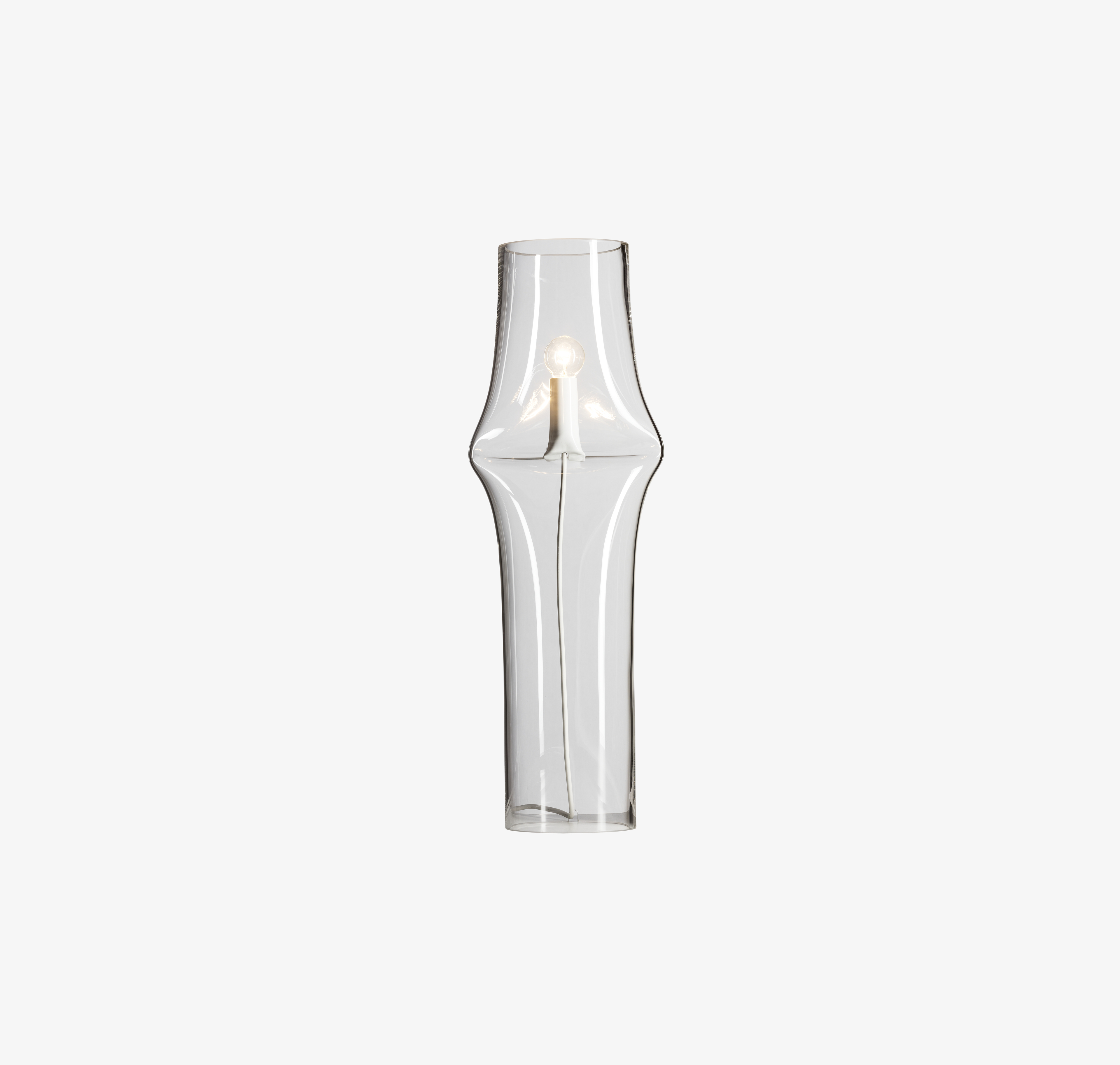 One of influences which shaped modern Japanese design was the Mingei (Folk Crafts) Movement. It emphasised the pursuit of practical beauty as well as the universal appeal of everyday craftwork design. Still present in contamporary Japanese design, these approaches affected also the design of Press Lamp. Here glass tubes are pressed as though they have been pinched, and the light source is fitted into the narrowed space. It does not rely on a metal form, the compression of the glass produces a soft, organic form and imbues each lamp with a singular appearance.