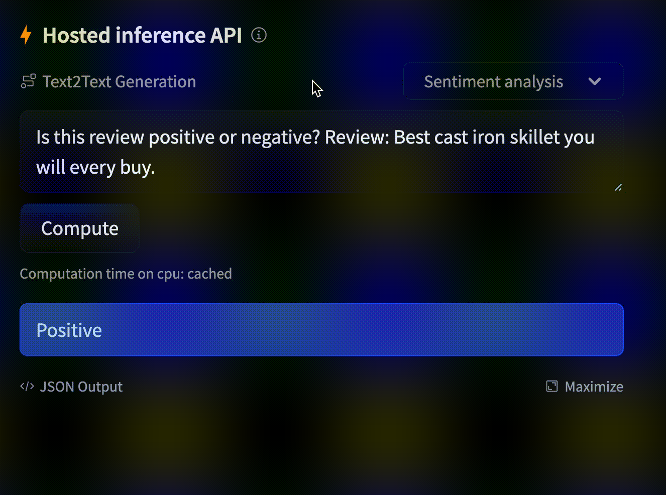 The type of widget displayed (text-generation, text to image, etc) is inferred from the model’s pipeline_tag, a special tag that the Hub tries to compute automatically for all models. The only exception is for the conversational widget which is shown on models with a pipeline_tag of either text-generation or image-text-to-text, as long as they’re also tagged as conversational. We choose to expose only one widget per model for simplicity.