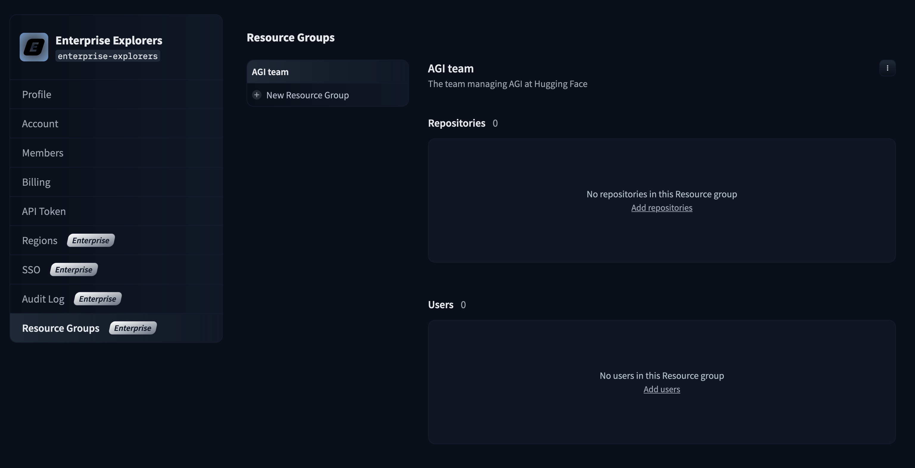 After creating a resource group and giving it a meaningful name, you can start adding repositories and users to it.