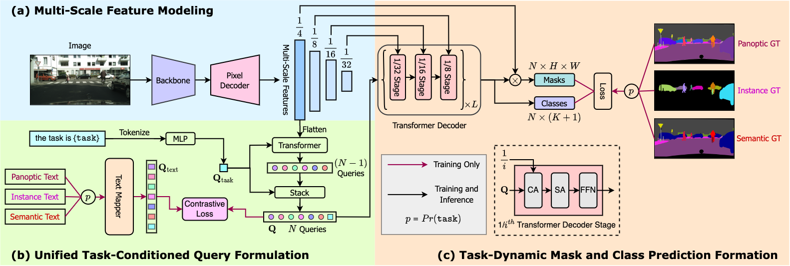 - OneFormer requires two inputs during inference: image and task token.